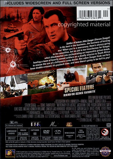 Soldier of fortune John Seeger (Steven Seagal) is the best in the business...the business of kicking a**! When you're a mercenary, there's always going to be casualties, but no job is too treacherous for Seeger, who's blackmailed into orchestrating an impossible prison break, leading a team of heavily-armed soldiers on a deadly mission to South Africa to rescue the son of a billionaire arms dealer. But, when Seeger finds out he's been double-crossed, it's payback time, and now there's going to be hell to pay! |